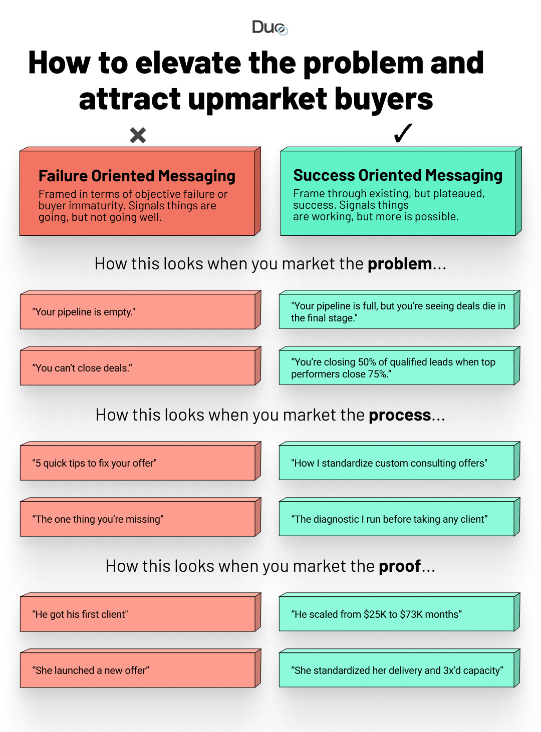 When you elevate the process, successful buyers think: “This person has thought this through. They’re not winging it.” Failure-mode buyers think: “This is too complex. I just need to know what to post.”