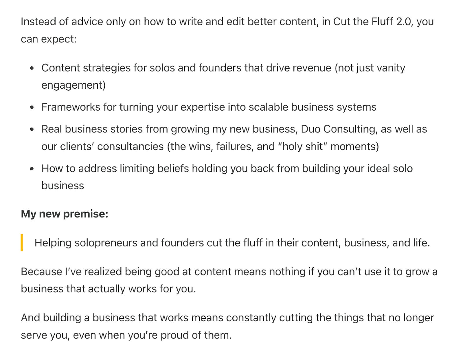 She had a bit of an identity crisis because she’d always been known as a content person. But serving clients as Duo made her realize she was growing beyond her content-only persona. She wanted to talk about business problems as a whole and how content ties into the wider business ecosystem.